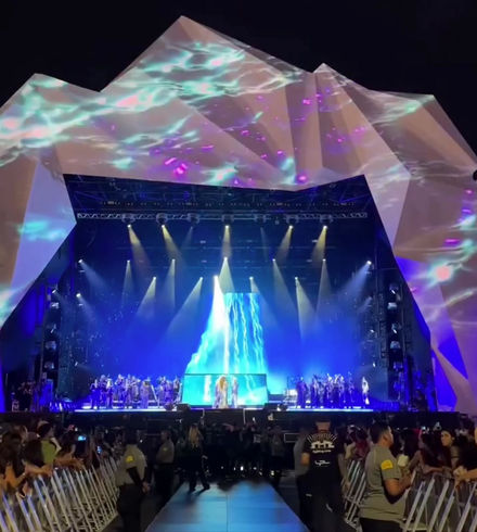 Para essa performance especial, Grazzi em parceria com a artista Ani Haze pelo Studio Nava, atuou na viabilização técnica e visual do video mapping, da fachada do palco. Foram utilizados 5 projetores de alta potência para cobrir a estrutura externa e mais 2 projetores dedicados à cenografia interna em tecido, criando camadas visuais que dialogavam com o espetáculo, a narrativa da artista e a dimensão simbólica do momento.